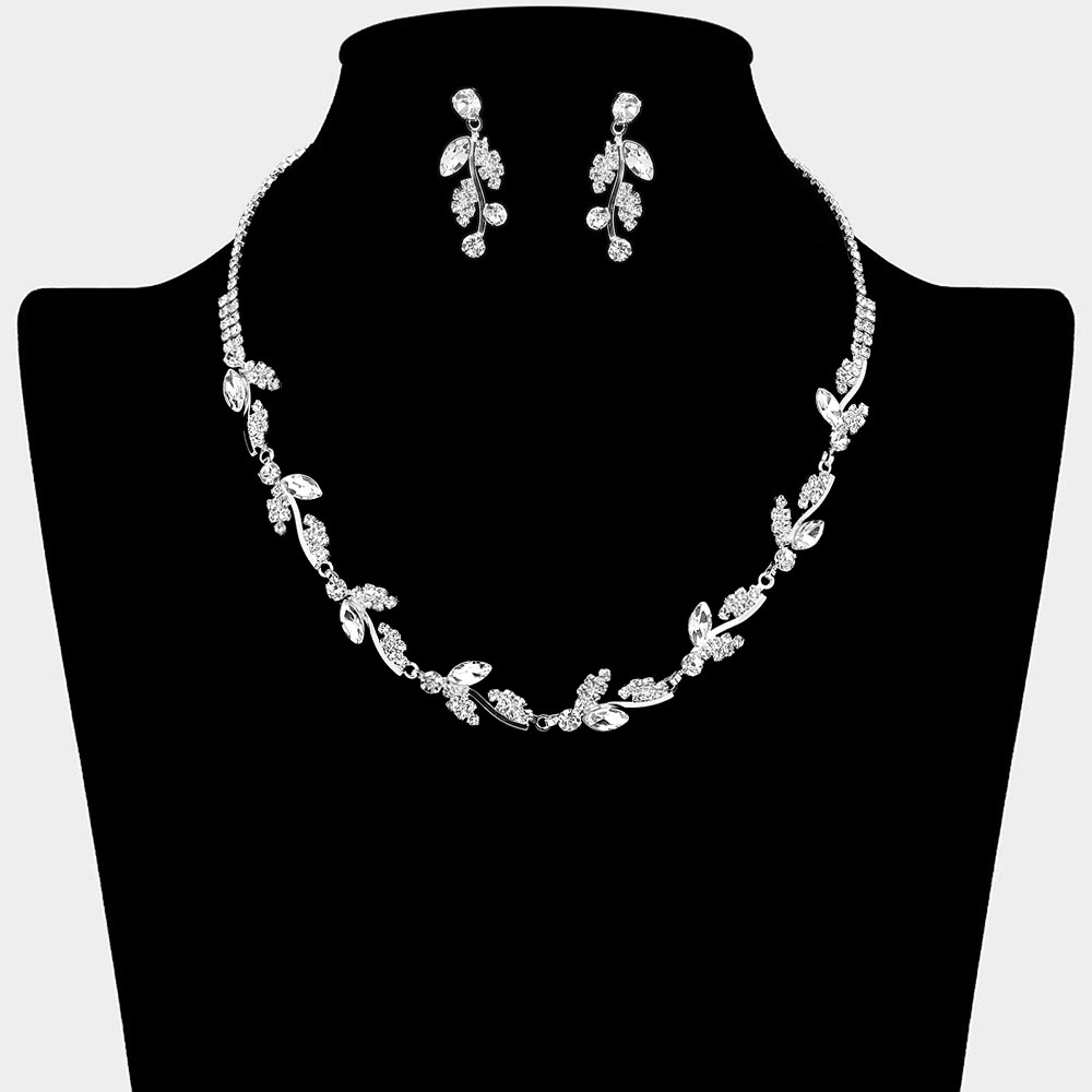 • Add elegance to your style with this floral vine necklace and earring set. Featuring a graceful leaf-inspired design, it exudes refined sophistication and sparkling charm. Perfect for weddings, parties, or formal occasions, this jewelry set enhances any outfit with timeless beauty.
