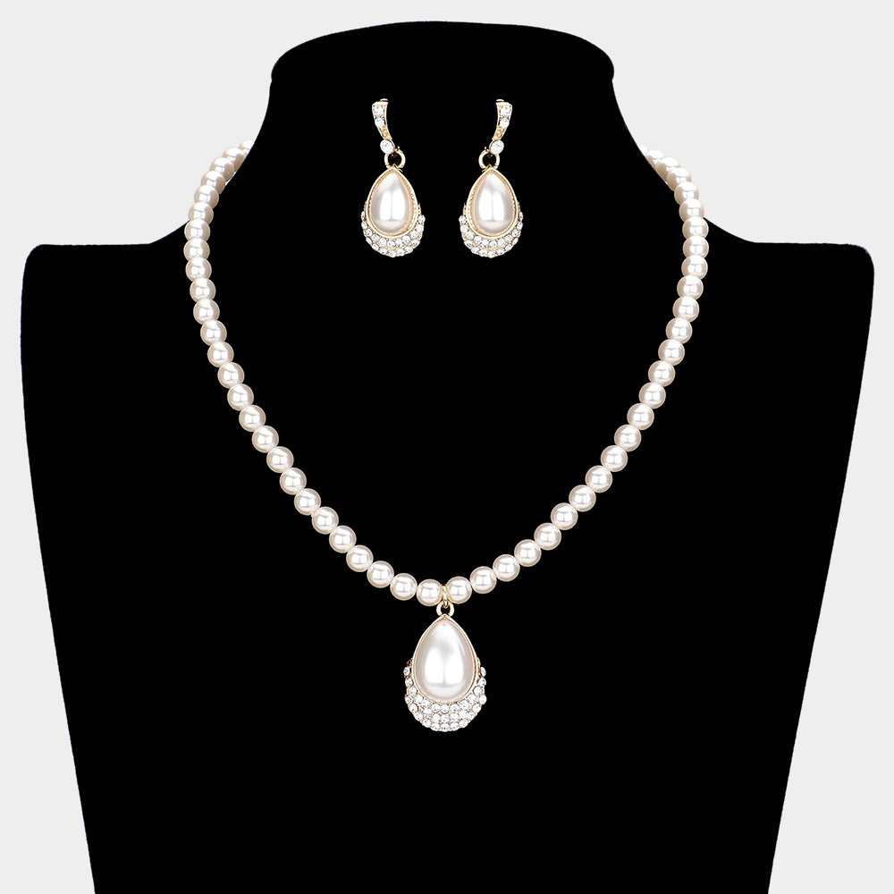 • Elevate your look with this elegant pearl teardrop jewelry set featuring a graceful necklace and matching earrings. Perfect for formal occasions or bridal wear, this timeless set combines sophistication and sparkle, creating a refined and luxurious finishing touch.