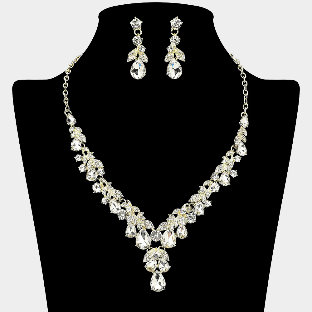 Teardrop Stone Cluster Embellished Rhinestone Necklace