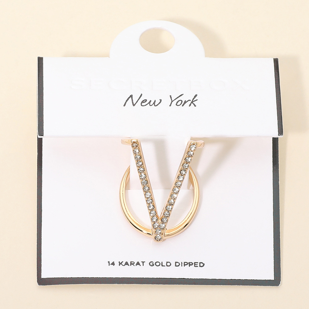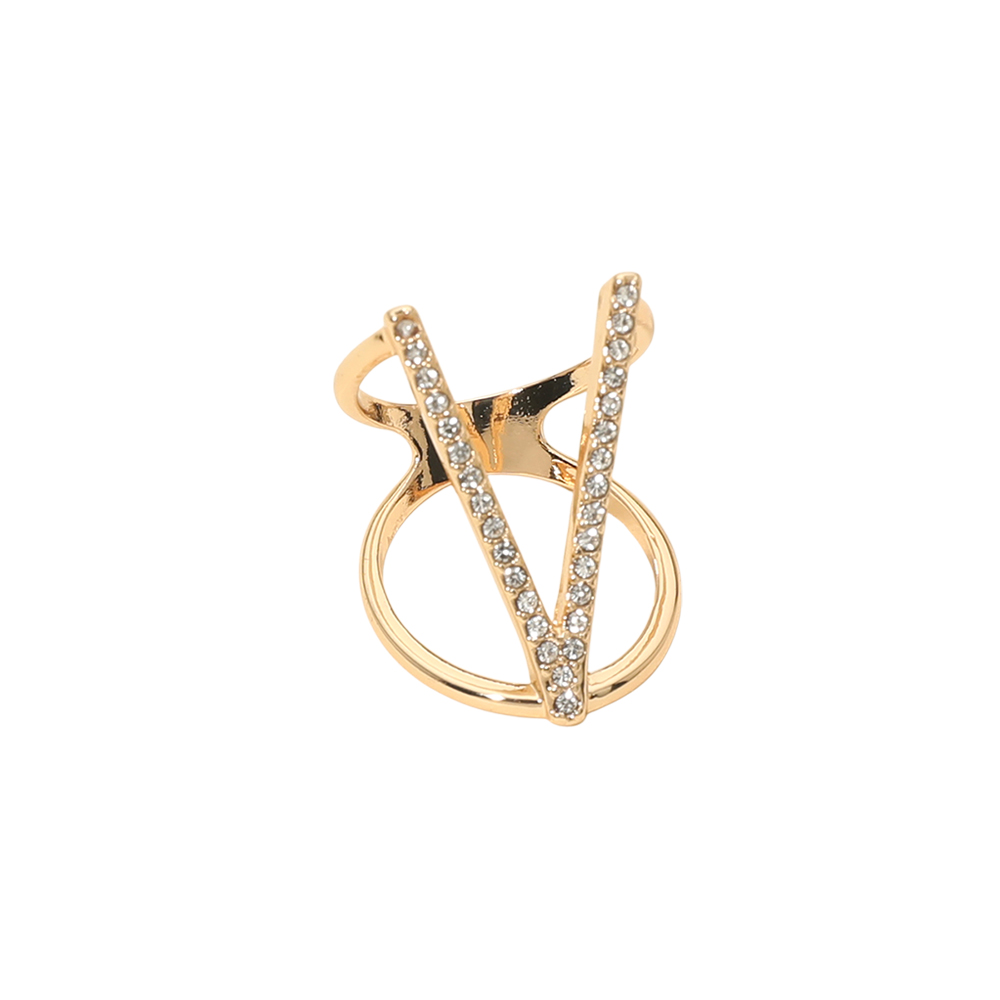 SECRET BOX_14K Gold Dipped Stone Paved V Accent Bold Adjustable Ring