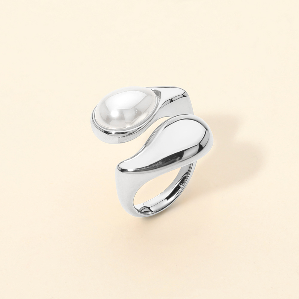 SECRET BOX_Stainless Steel Pearl Dome Accent Wrap Statement Ring SECRET BOX_Stainless Steel Pearl Dome Accent Wrap Statement Ring SECRET BOX_Stainless Steel Pearl Dome Accent Wrap Statement Ring