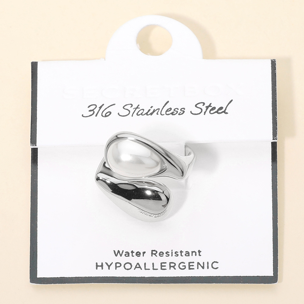 SECRET BOX_Stainless Steel Pearl Dome Accent Wrap Statement Ring