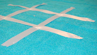 Cut. So they form a square around the center point along the 2 1/2 inch line lay your bits of ribbon. Your square should measure 5×5 inches along the interior.