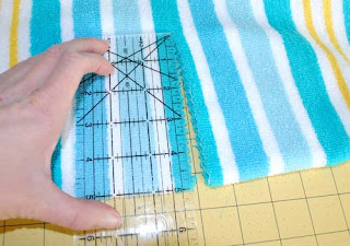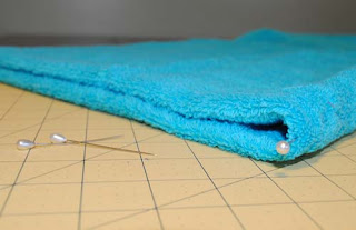 Twist your towel in half lengthwise and then than back widthwise to find the center point on your towel. Mark it with a pin or with a marker that is a small dot.