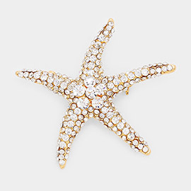 Round Stone Centered Rhinestone Embellished Branch Flower Pin Brooch