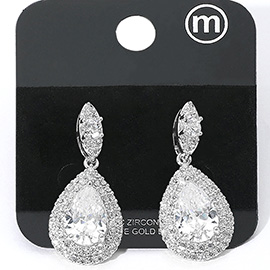 14K Gold Plated Bow Top Heart CZ Stone Bezel Drop Dangle Earrings