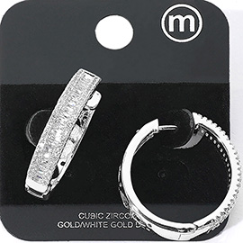 CZ Stone Paved Split Hoop Earrings
