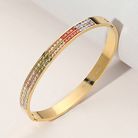 14K Gold Plated CZ Stone Paved Bar Link Hinged Bangle Bracelet