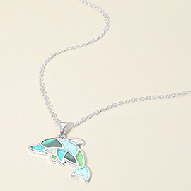 Fish Pendant Accent Beaded Chain Layered Necklace