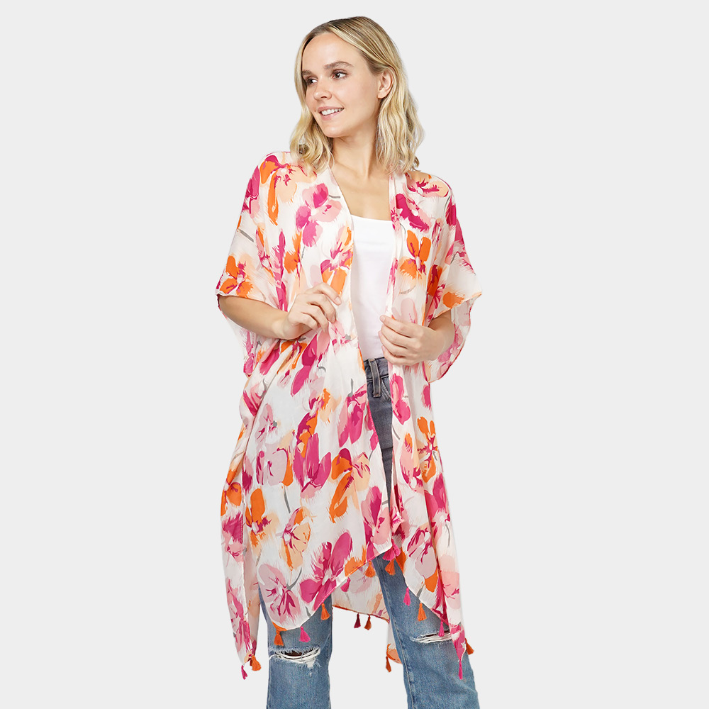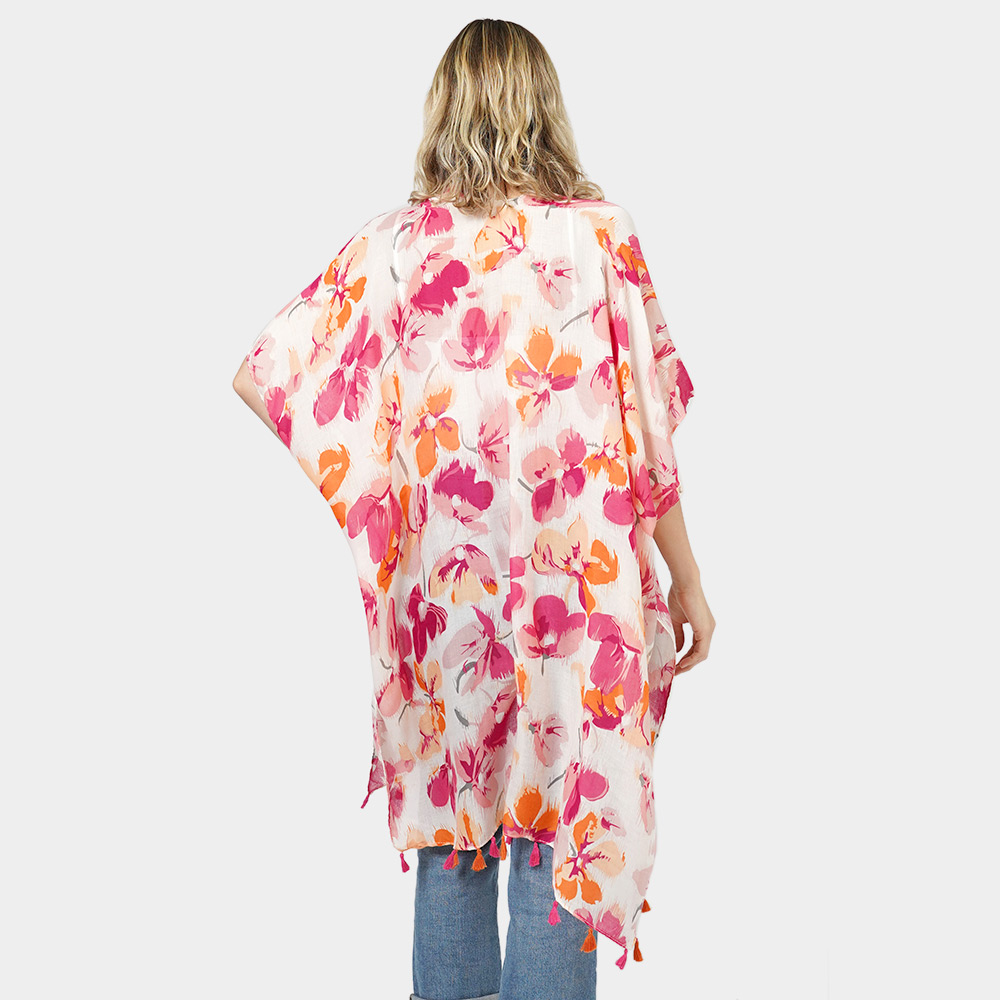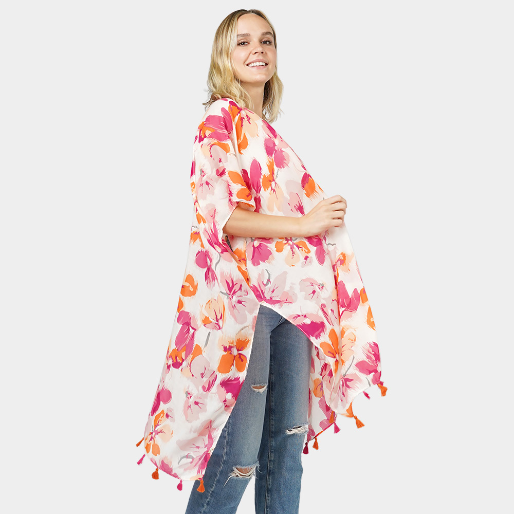 Flower Printed Cover Up Kimono Poncho
