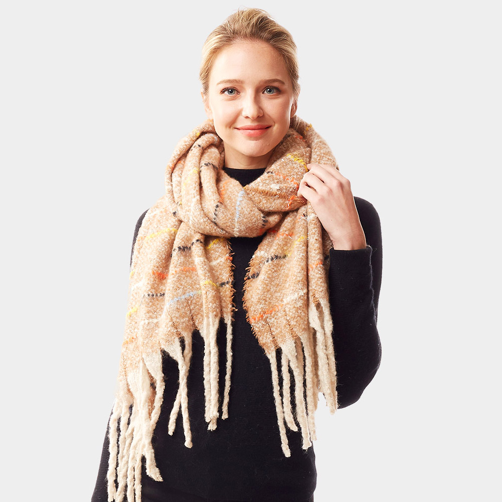 Two-Tone Cashmere Feel Fringe Edge Scarf