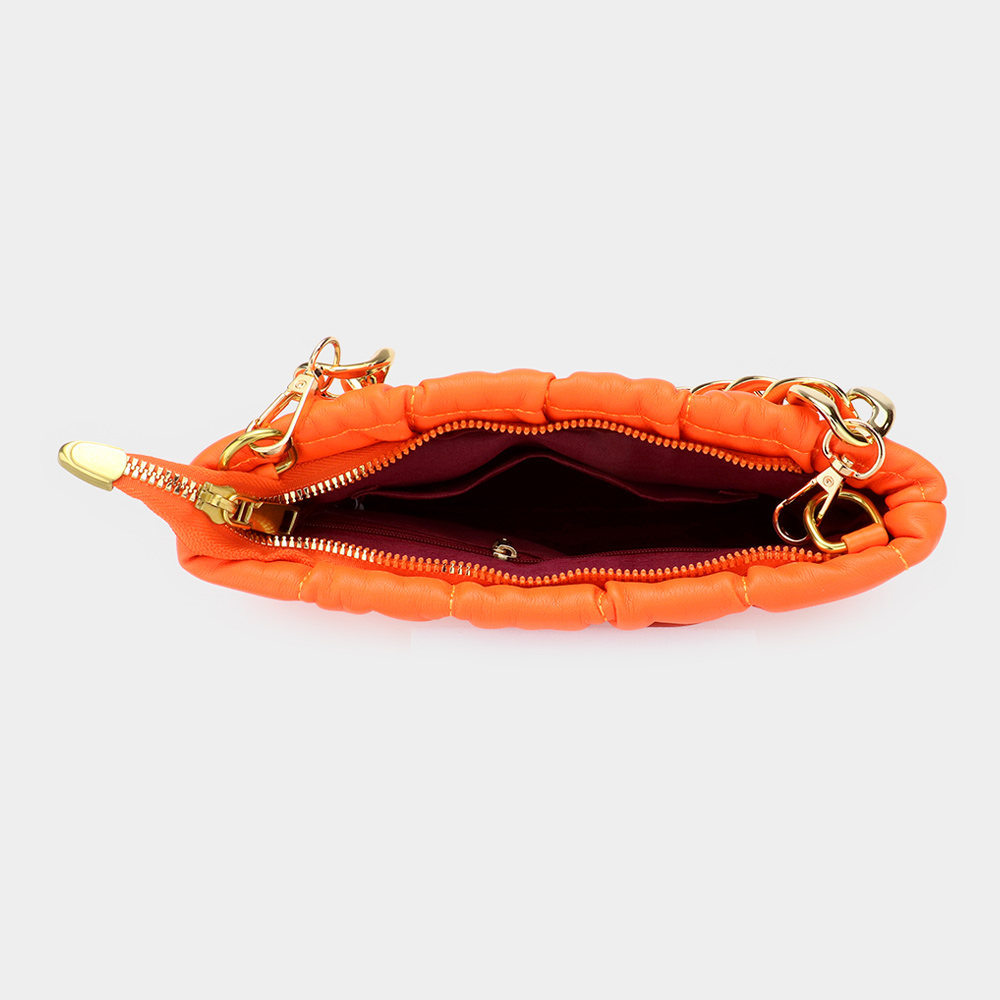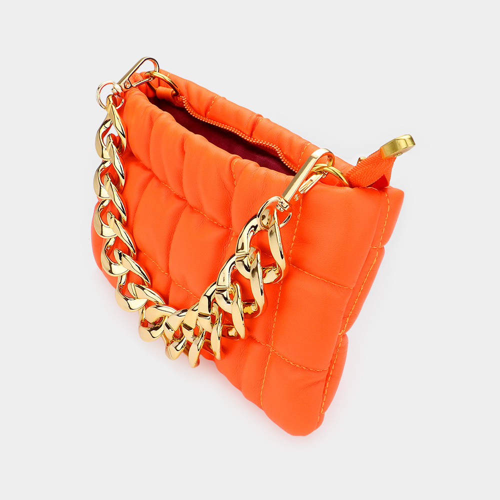 Faux Leather Padded Puffer Shoulder/Crossbody Bag With Chain Strap