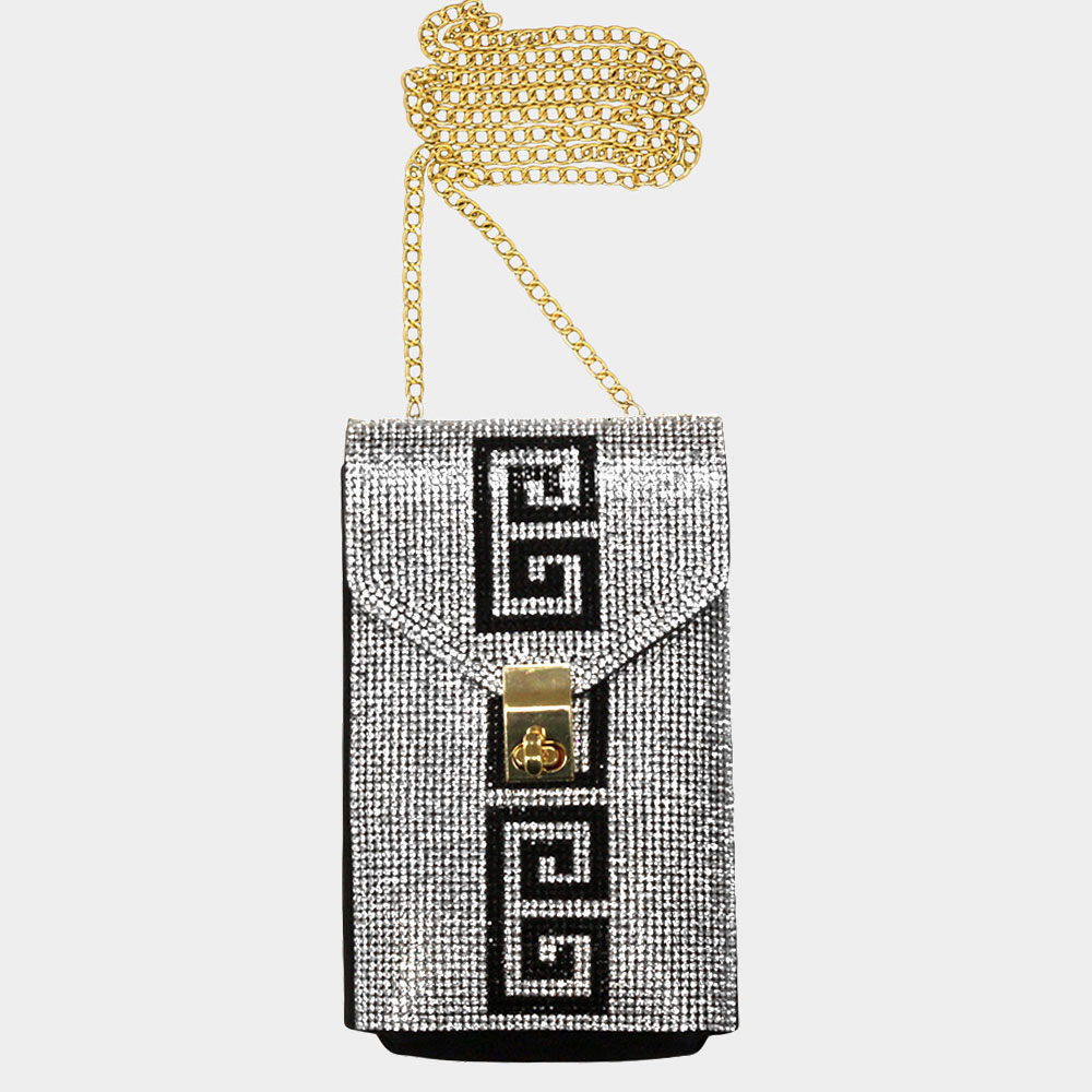 Greek Patterned Bling Rectangle Crossbody Cellphone Bag