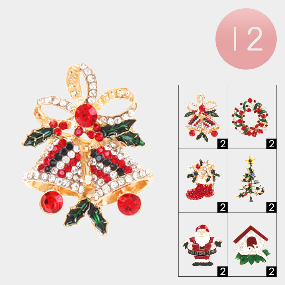 12PCS - Christmas Theme Pin Brooches