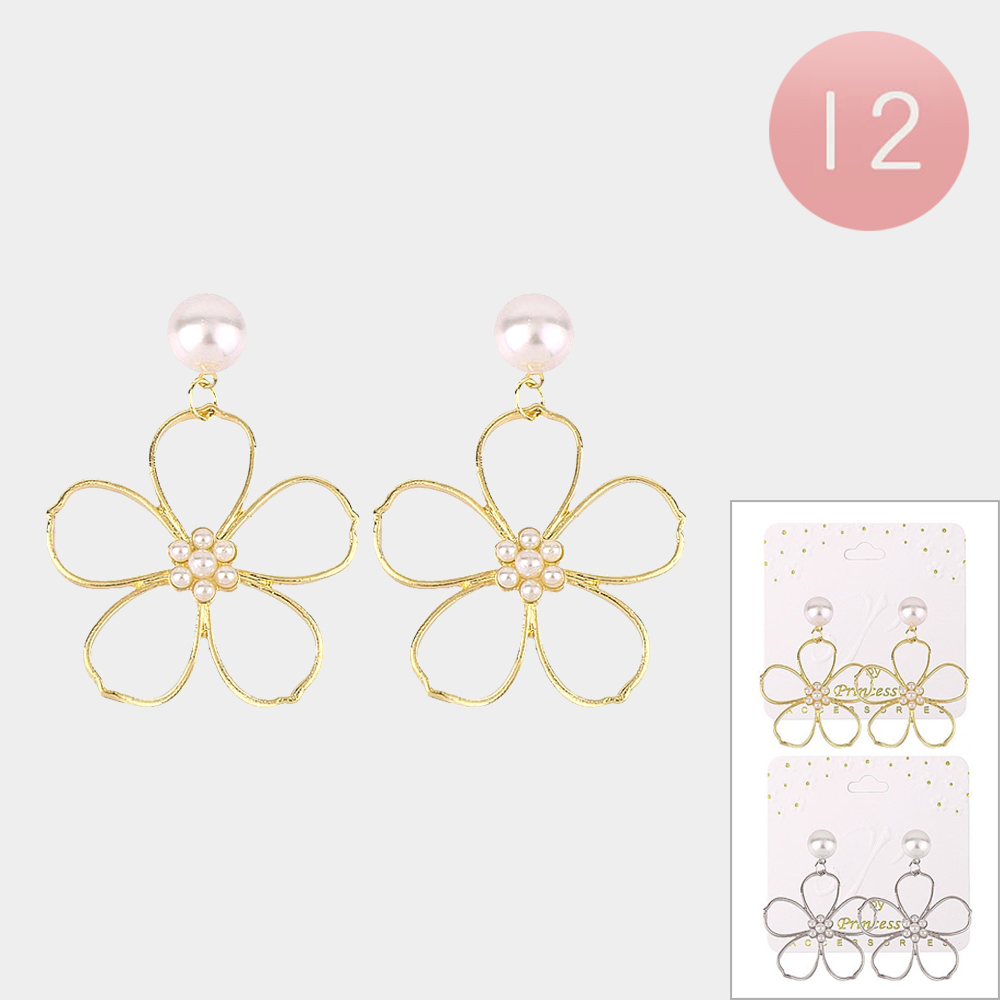 White Gold Dipped Floral CZ Stone Stud Earrings