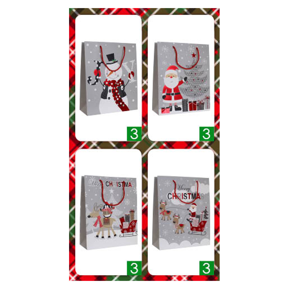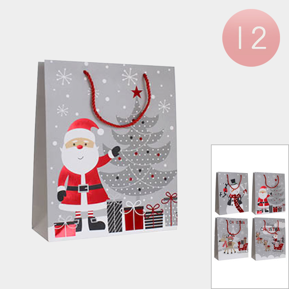 12PCS - Santa Claus Christmas Tree Snowman Rudolph Printed Gift Bags