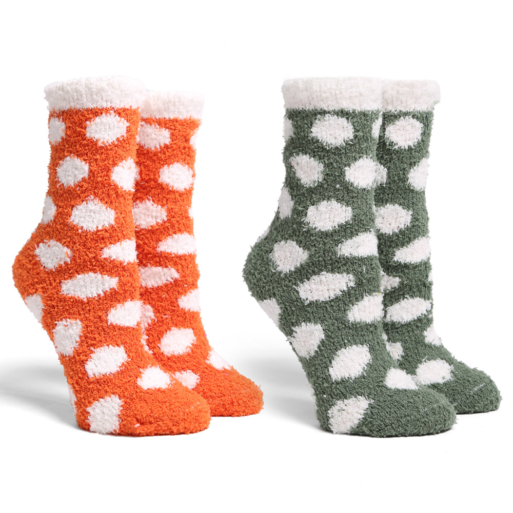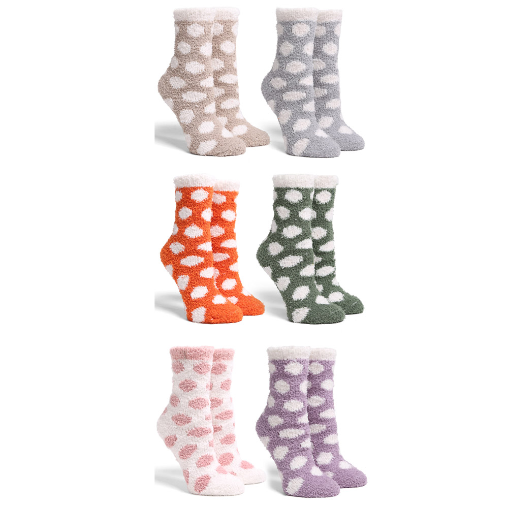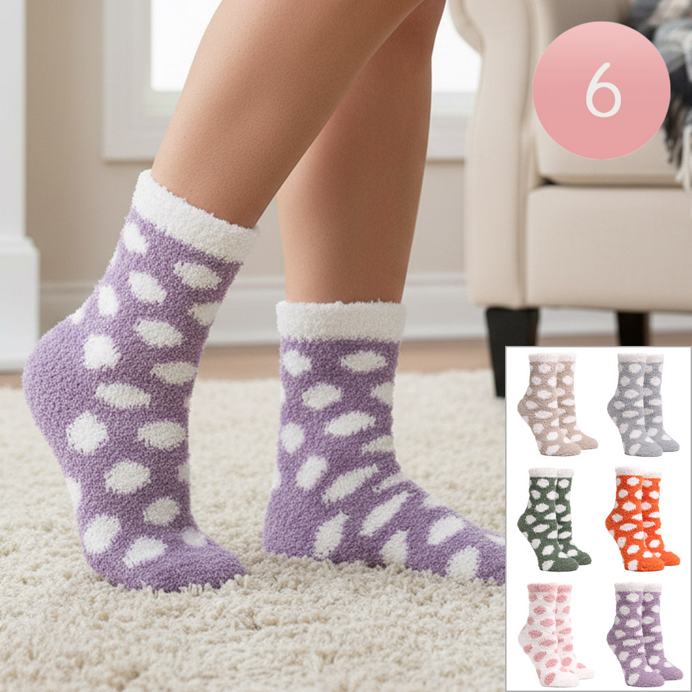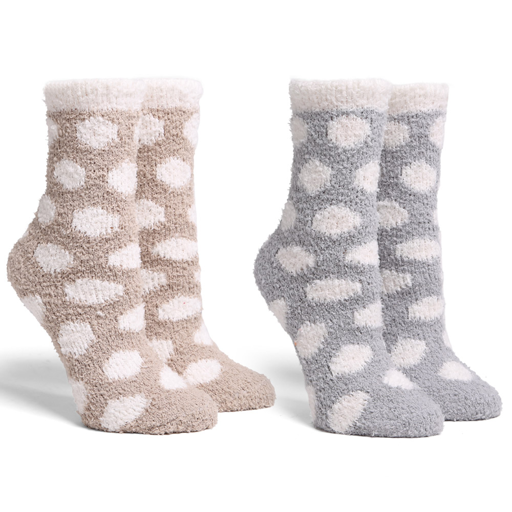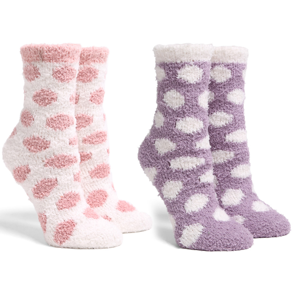 Details • Size : 9 - 11 • Material : 100% Poly. Microfiber • Adorable fuzzy socks set with fun polka dot designs for everyday comfort. These plush and stretchy socks keep feet warm and cozy, perfect for lounging at home or as a thoughtful gift. Soft, breathable, and stylish for ultimate relaxation during chilly days.