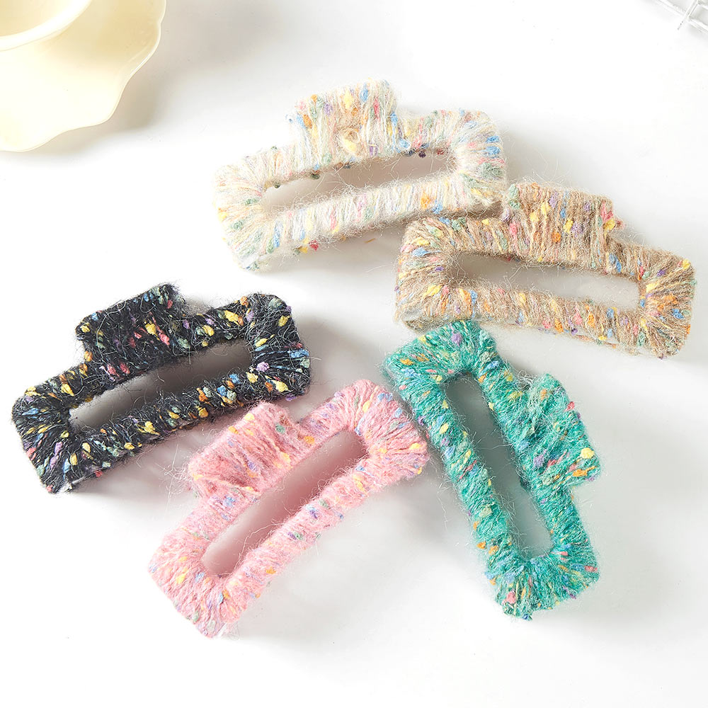 Wrapped Colorful Thread Rectangle Hair Claw Clip