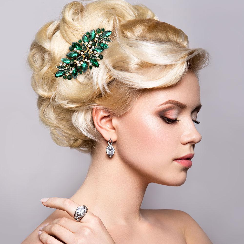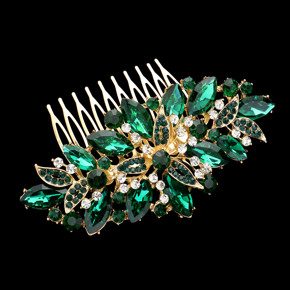 Marquise Stone Accented Leaf Cluster Hair Comb