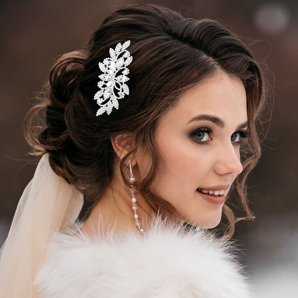 Rhinestone Teardrop Sprout Leaf Hair Comb