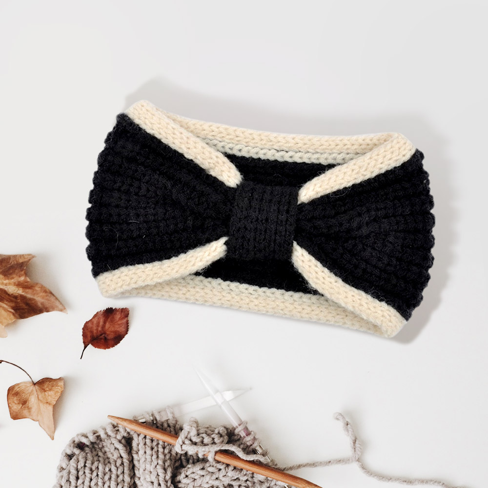 Two Tone Knit Bow Earmuff Headband