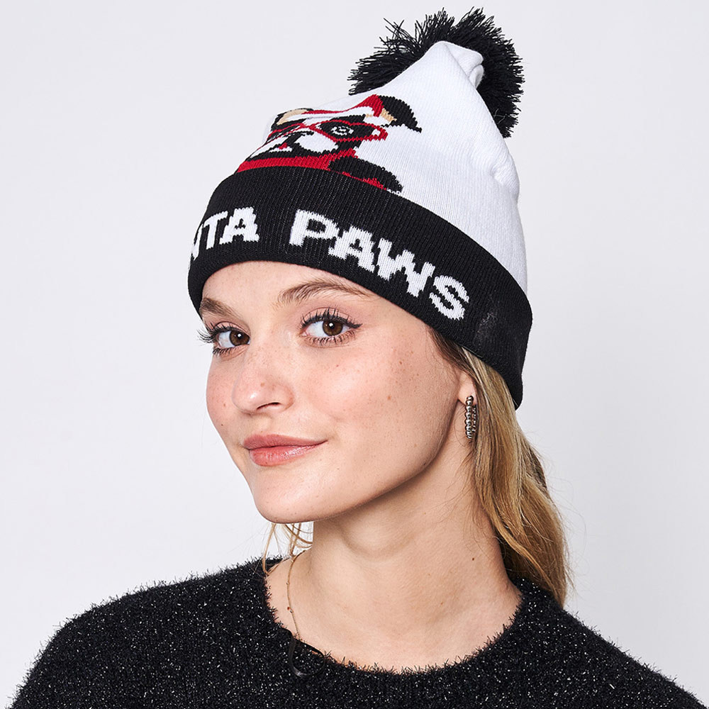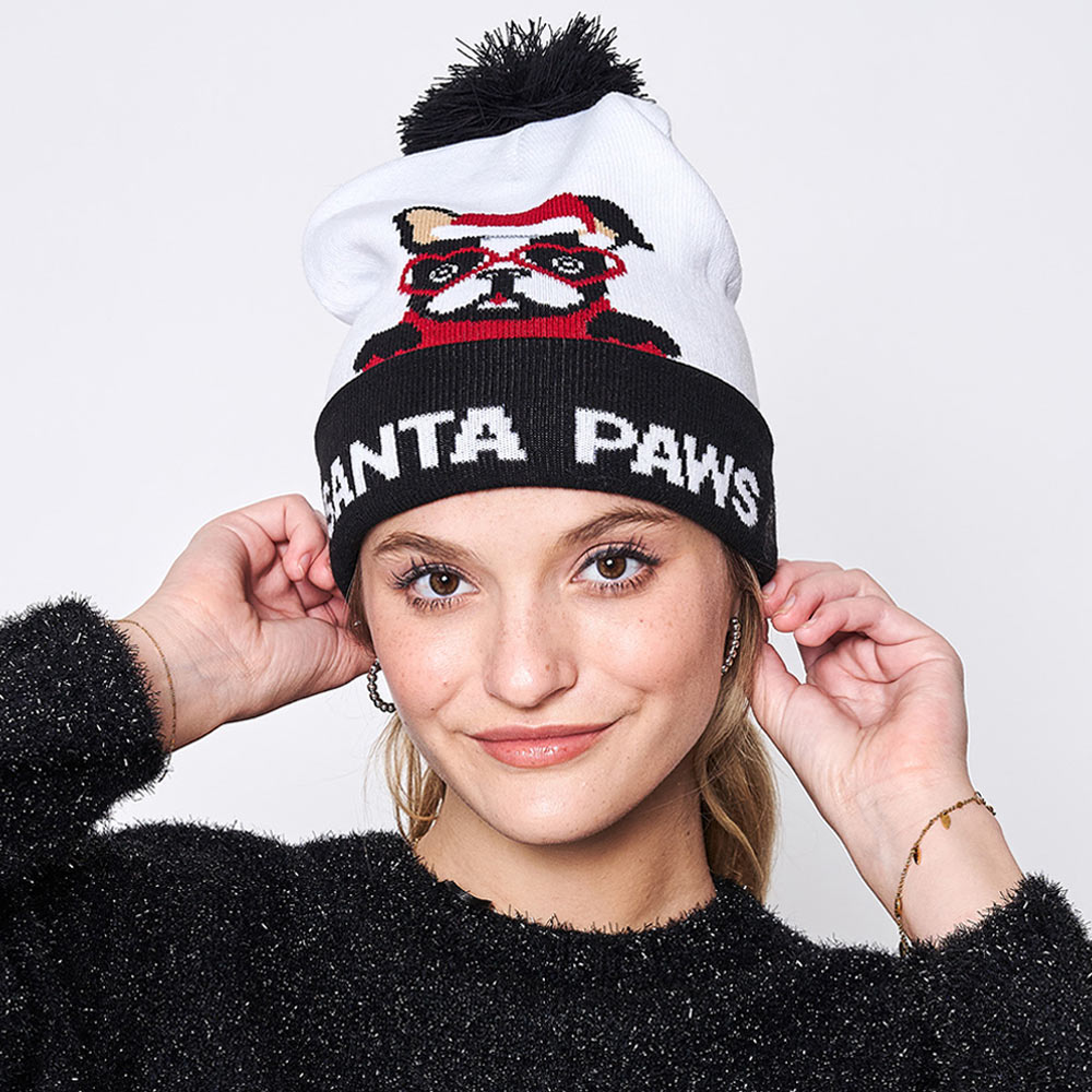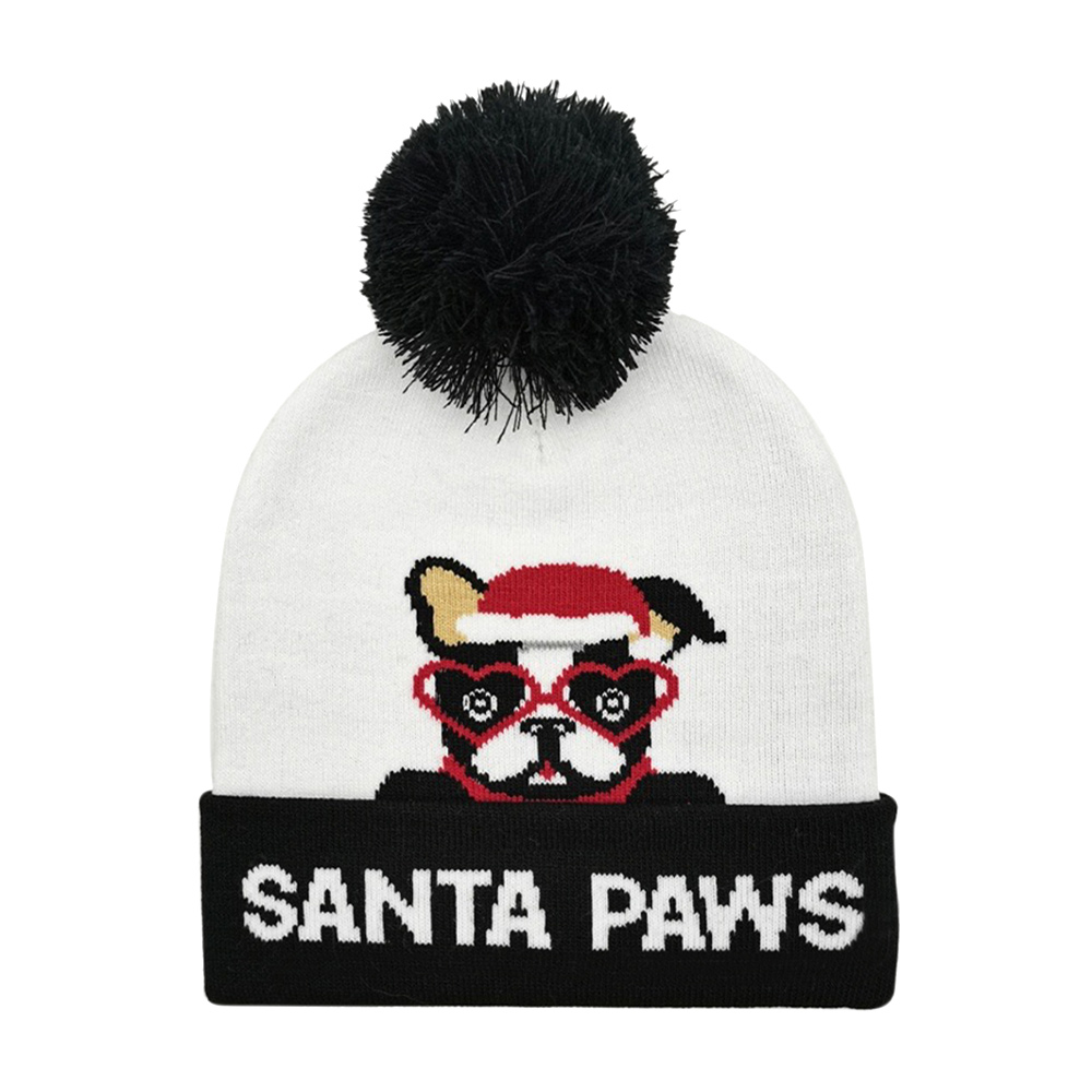 Santa Paws Message Bulldog Pom Pom Beanie Hat