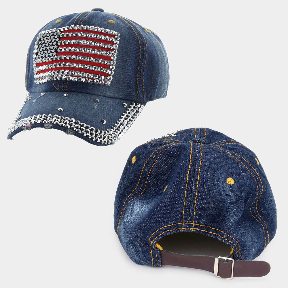 American USA Flag Studded Baseball Cap