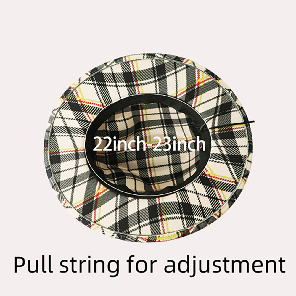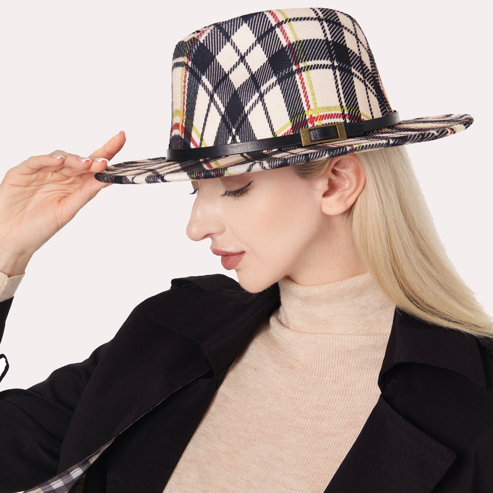 Plaid Check Patterned Faux Leather Band Fedora Hat