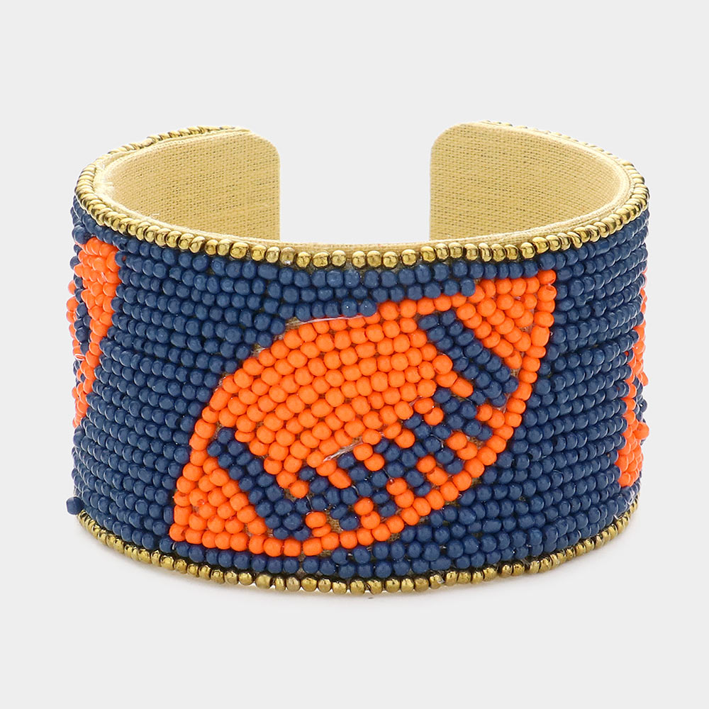 Game Day Seed Beaded Football Accented Cuff Bracelet