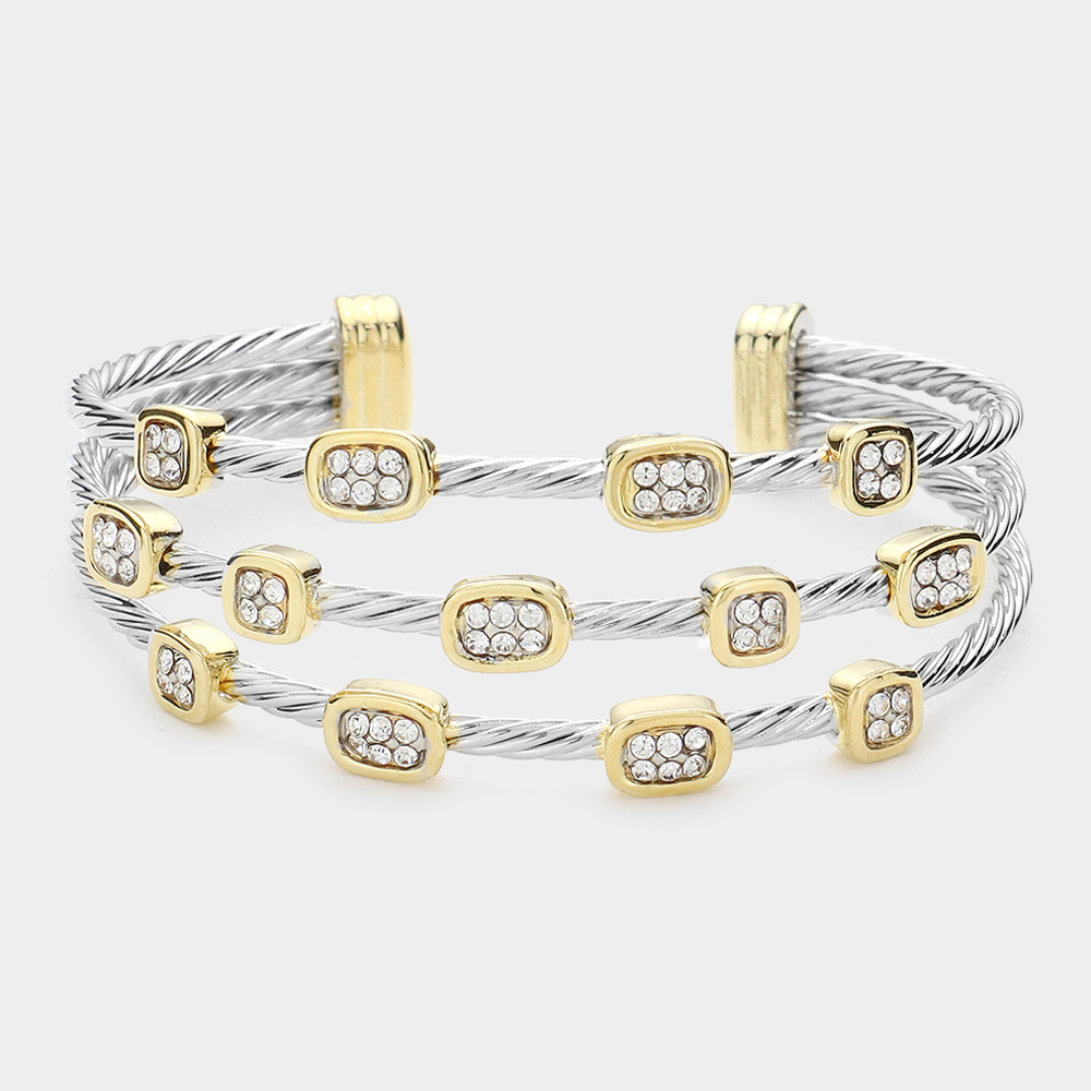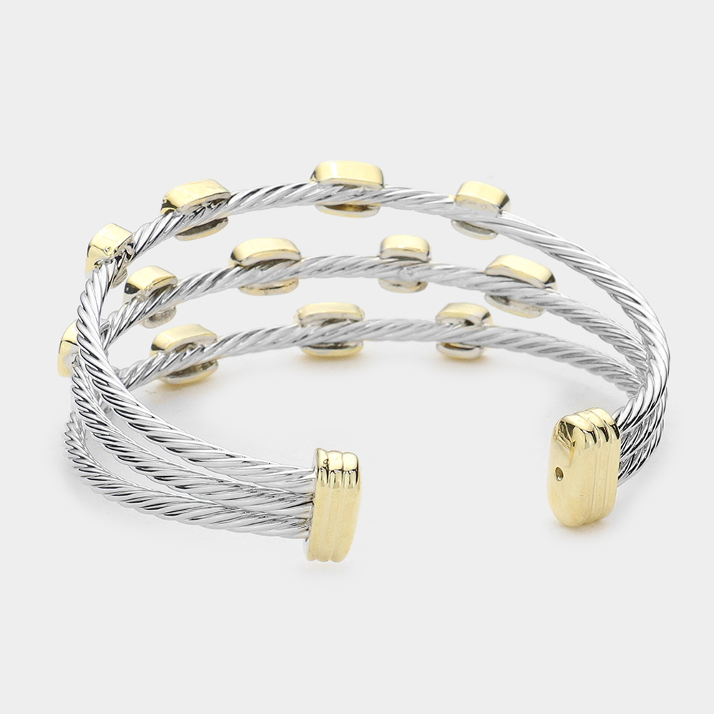 Rhinestone Embellished Split Metal Cuff Bracelet