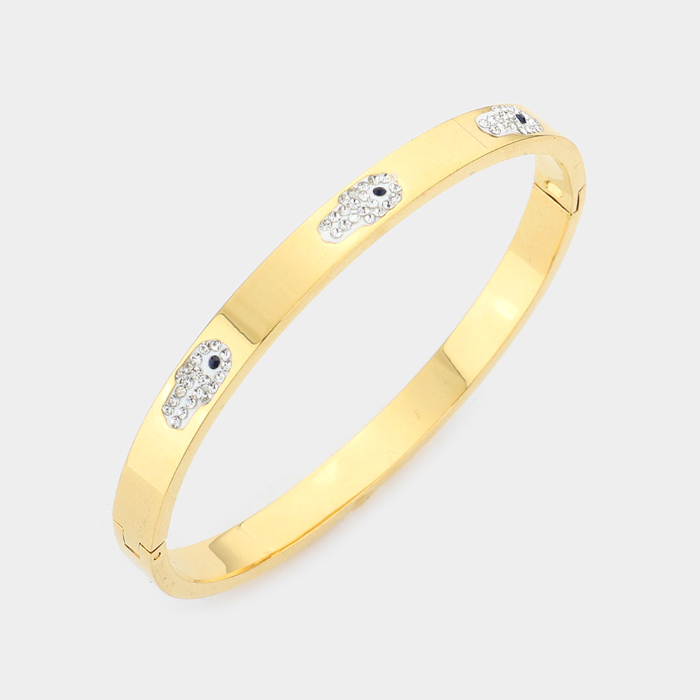 CZ Embellished Hamsa Hand Stainless Steel Bangle Evening Bracelet