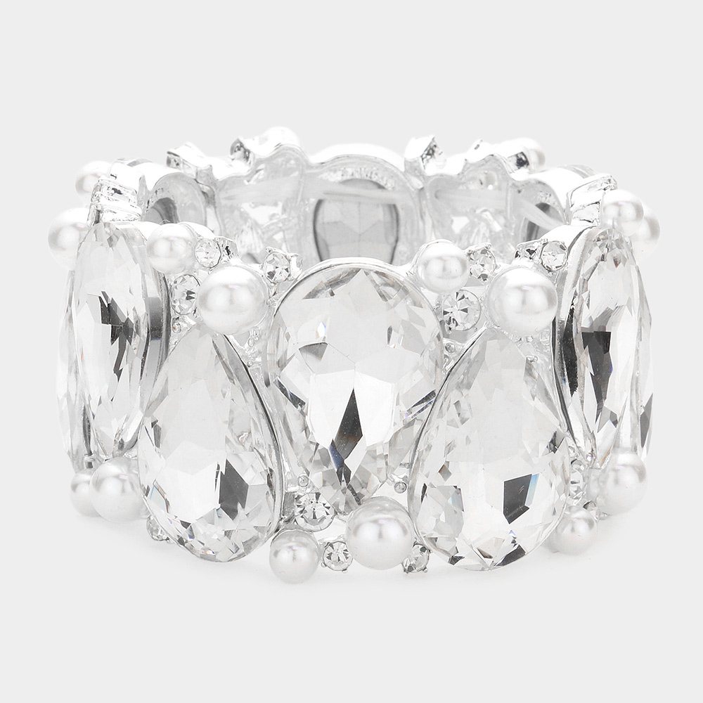 Pearl Teardrop Stone Stretch Evening Bracelet