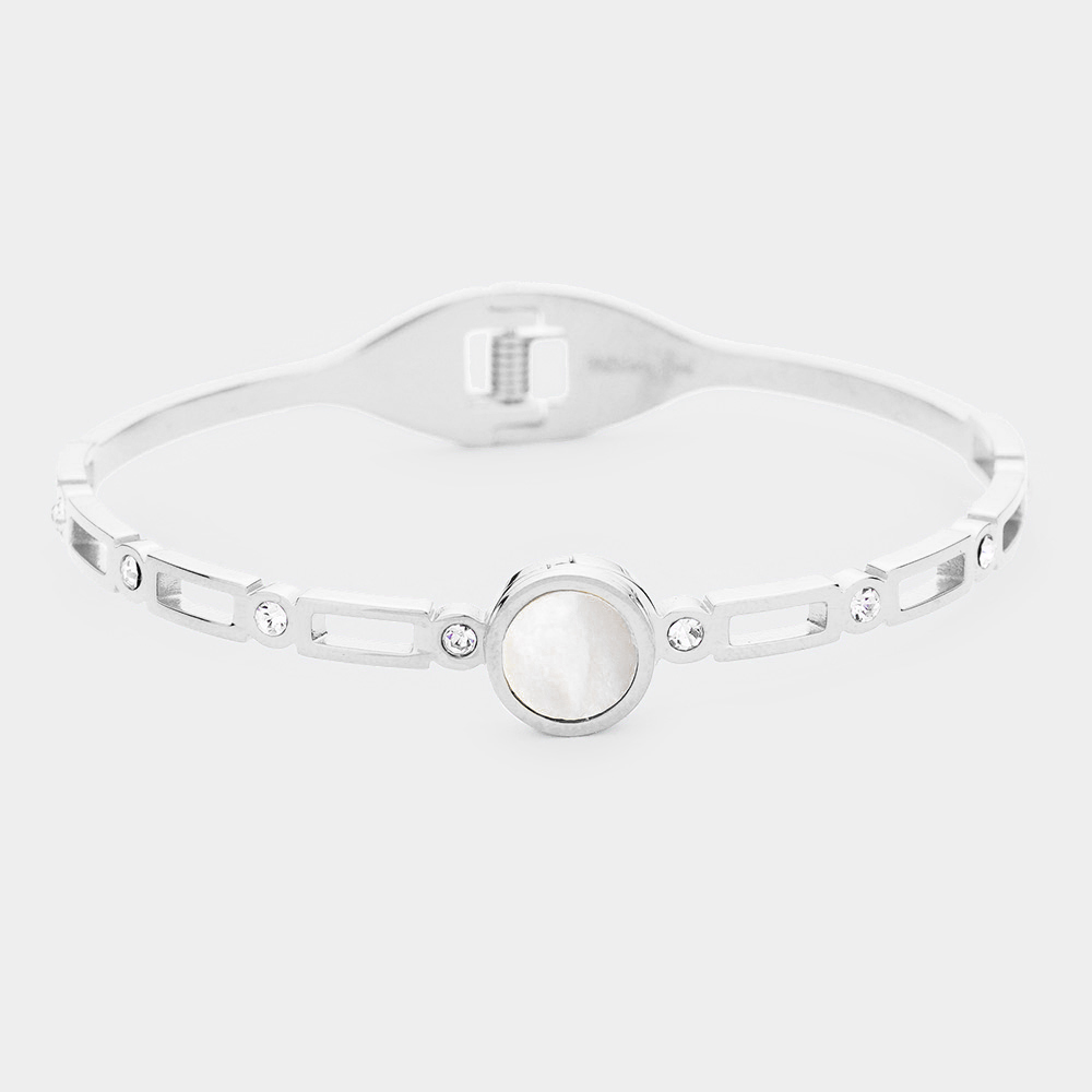 Round Mother of Pearl Stainless Steel Hinged Bracelet