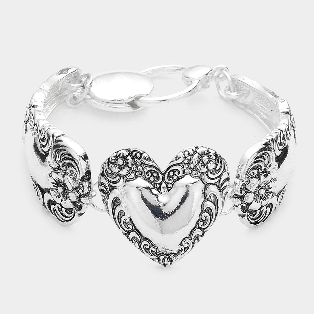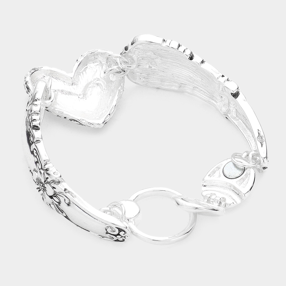Metal LOVE Engraved Pearl Heart Locket Pearl Charm Beaded Bracelet