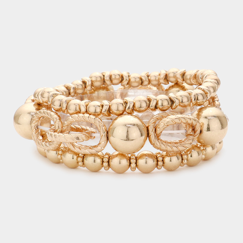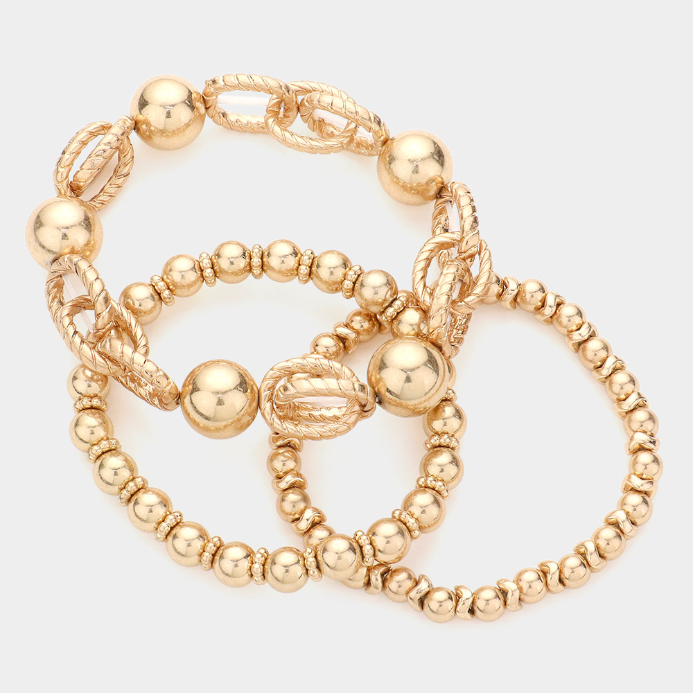 3PCS - Metal Ball Stretch Multi Layered Bracelets