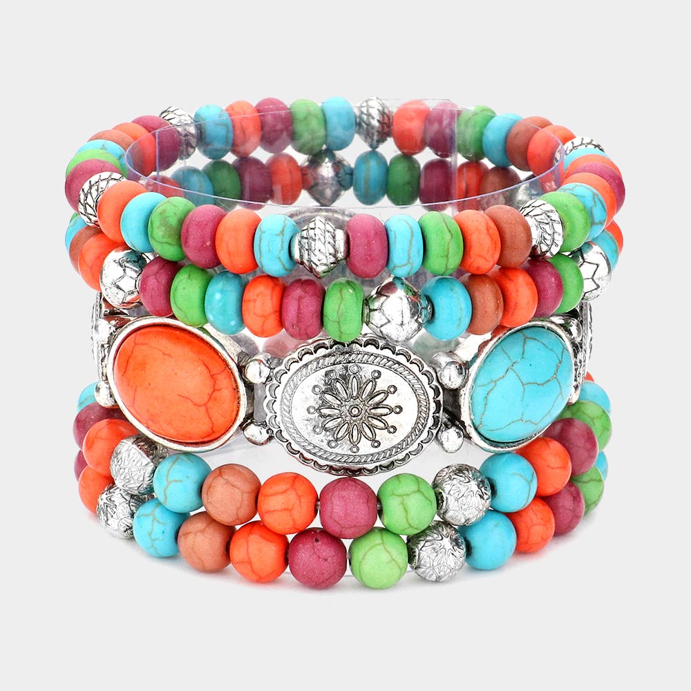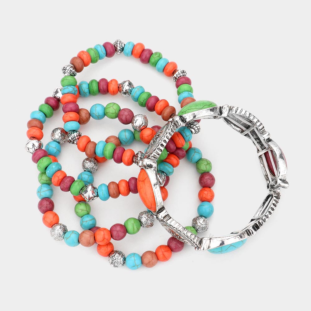 5PCS - Natural Stone Western Style Multi Layered Bracelets