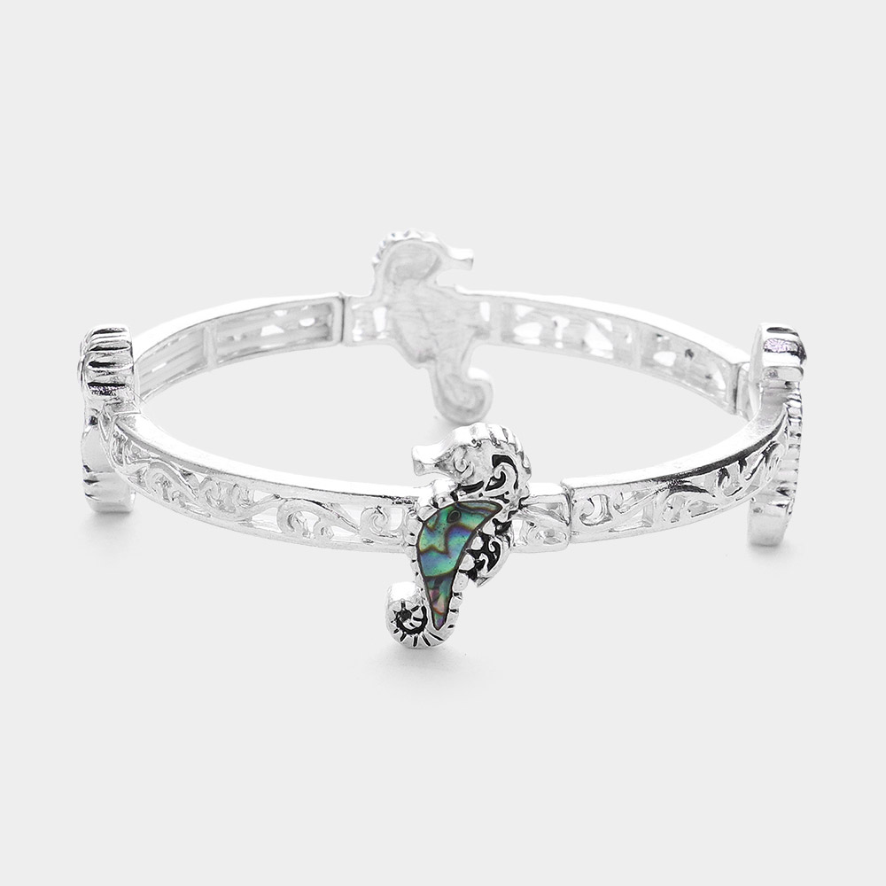 2PCS Freshwater Pearl Abalone Mermaid Charm Stretch Bracelet
