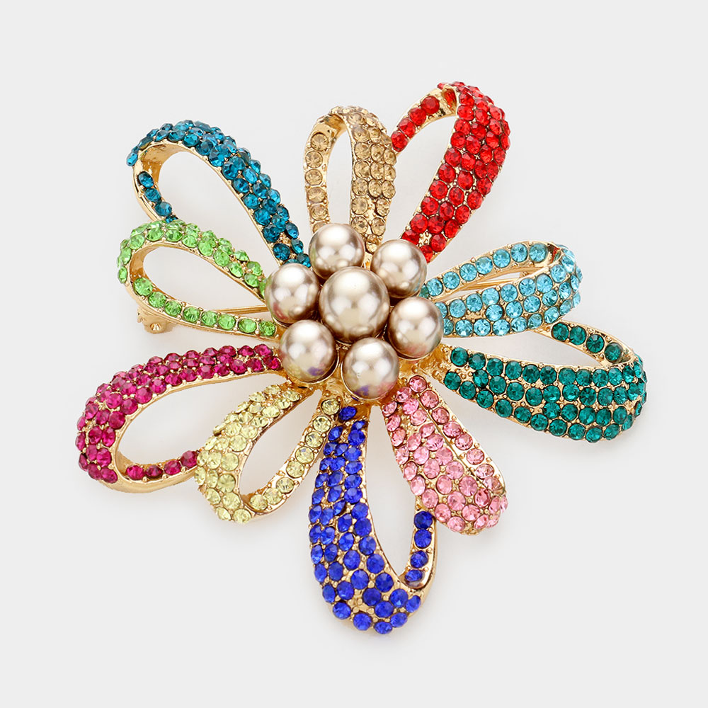 Cluster Pearl Rhinestone Pave Flower Brooch