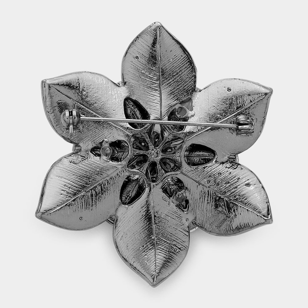 Stone Embellished Metal Flower Pearl Pendant Necklace