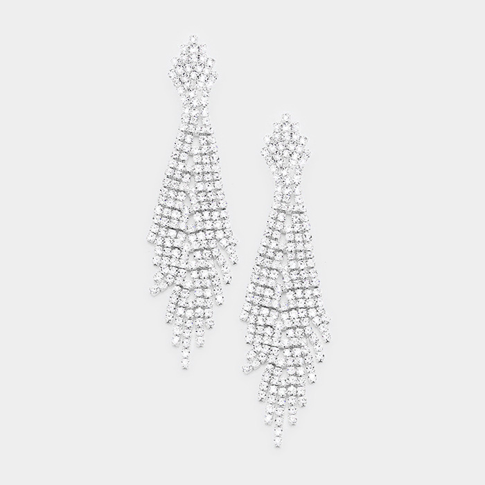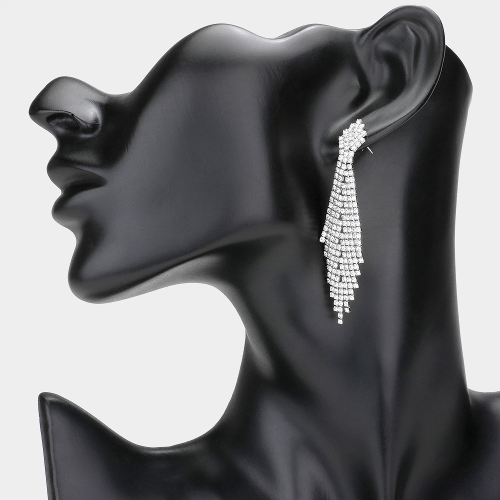 Crystal Rhinestone Pave Fringe Evening Earrings