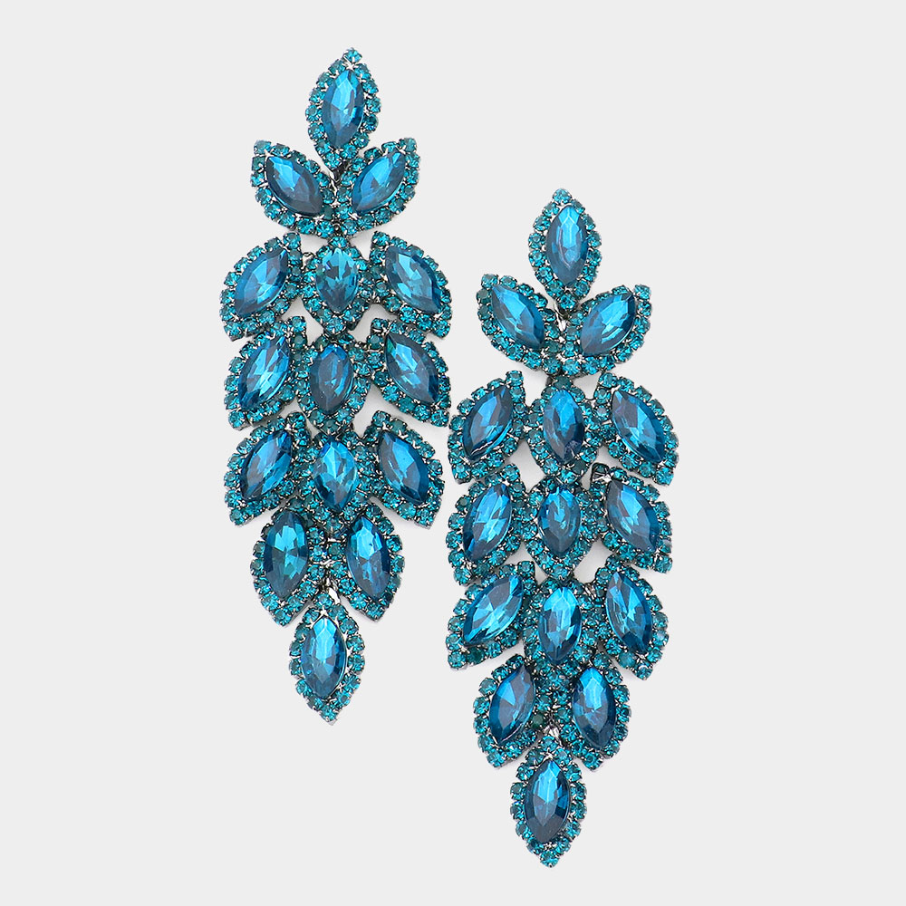 Crystal Stone Leaf Cluster Marquise Evening Earrings