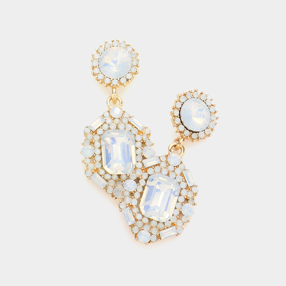 Greek Pattern Detailed Rhinestone Embellished Triangle Earrings