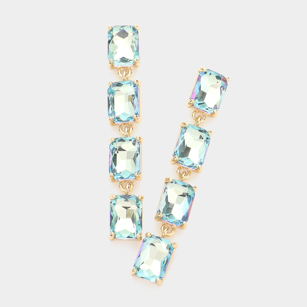 White Gold Dipped CZ Stone Embellished Dangle Evening Earrings