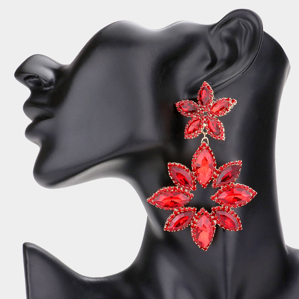 Floral Marquise Stone Cluster Dangle Evening Earrings