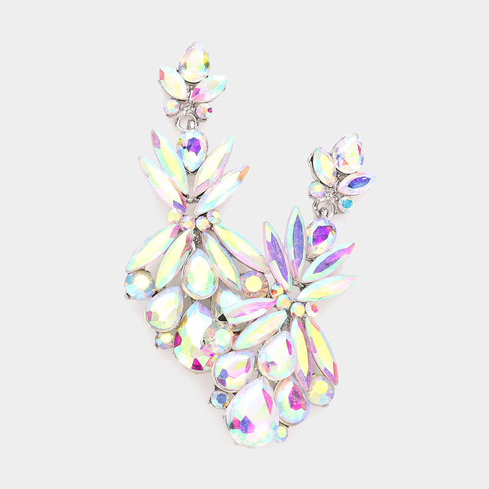 Multi Stone Cluster Dangle Evening Earrings
