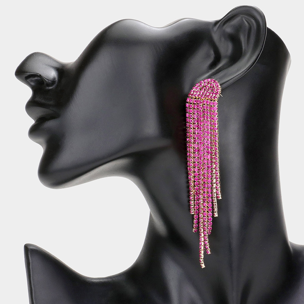 Rhinestone Fringe Drop Evening Earrings