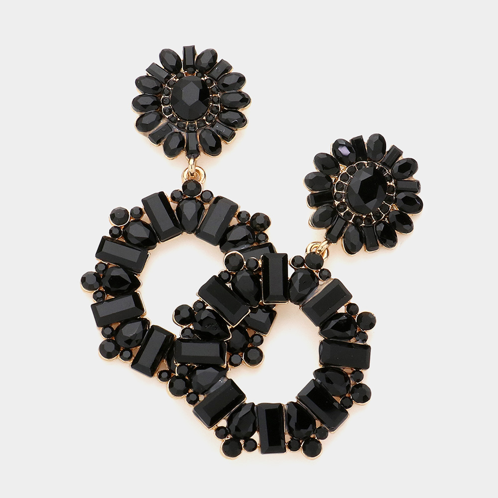 Stone Cluster Open Round Link Dangle Evening Earrings