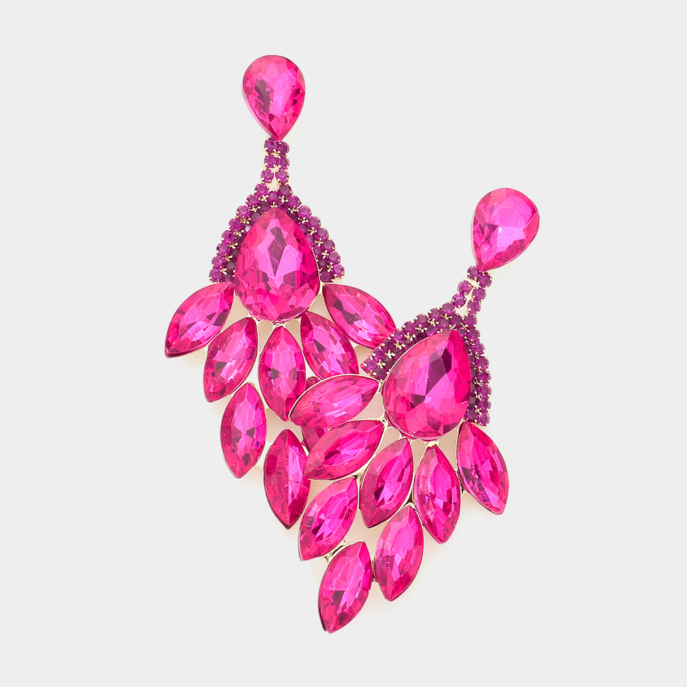 Teardrop Accented Marquise Stone Cluster Evening Earrings