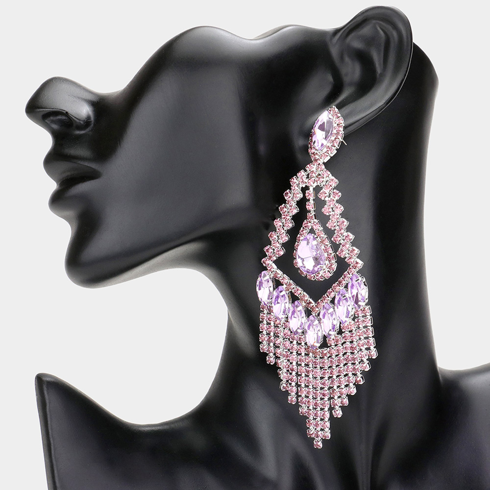 Teardrop Stone Cluster Chandelier Dangle Evening Earrings