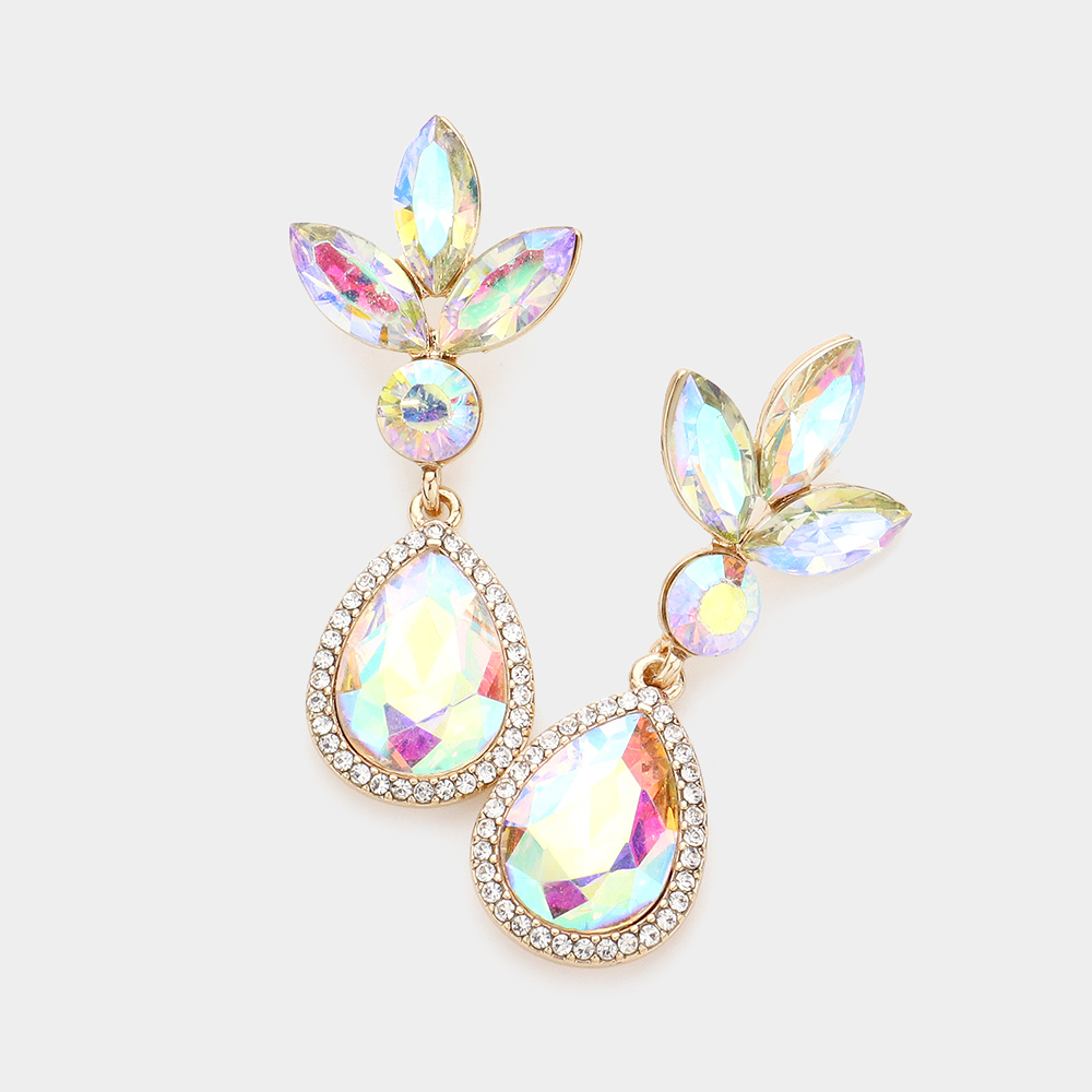 Marquise Stone Cluster Drop Teardrop Dangle Evening Earrings
